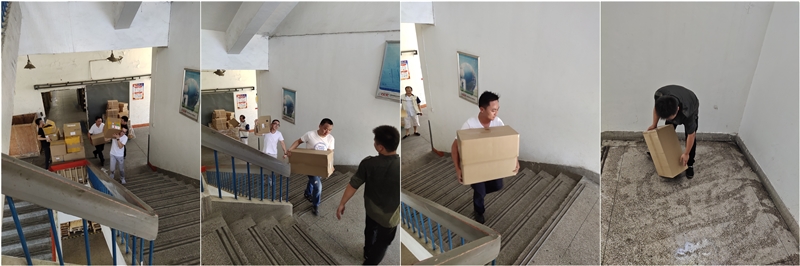 7月25日上午9:30,計劃物控一部接到生產指令——10593訂單需要上線,部分物料存放在一樓中轉庫需要搬運。然而此時,華電大廈貨梯故障,為了確保訂單及時上線,緊急組織部分庫管人員搬運。悶熱的天氣,一級級的臺階,被汗水浸濕的衣服,小伙子們毫無怨言,手提肩扛將幾大箱物料及時送到產線。
