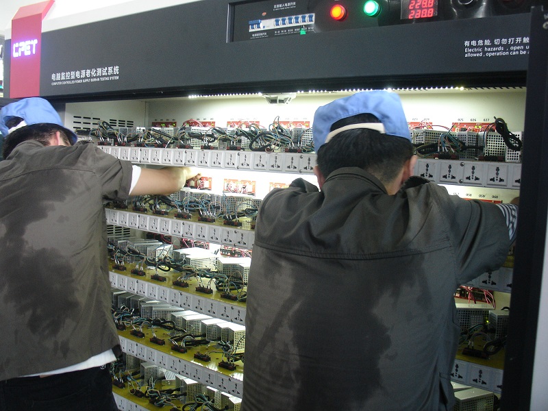 7月29日,走進老化室內,一股熱浪撲面而來。室內38℃,老化柜內48℃,用“揮汗如雨”來形容在這里工作的同事們一點都不夸張。在這通風并不好的環境下,汗水早已浸濕了他們的衣服,額頭上的汗珠不停的滴落下來,然而艱苦的環境并沒有影響到他們的工作,他們只是伸手拭去汗水,繼續手頭上的工作。