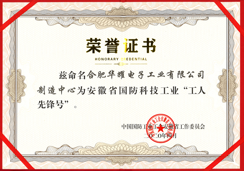 2019-2020年,華耀公司組織參加省委軍民融合辦組織的“當好主人翁、建功新時代”為主題的勞動競賽活動,主動參與“工人先鋒號”創建活動并取得突出表現。公司在重點項目申報、產業聯盟結對、軍民產品技術交流等方面,對安徽省國防科技工業軍民融合深度發展做出了積極的貢獻。