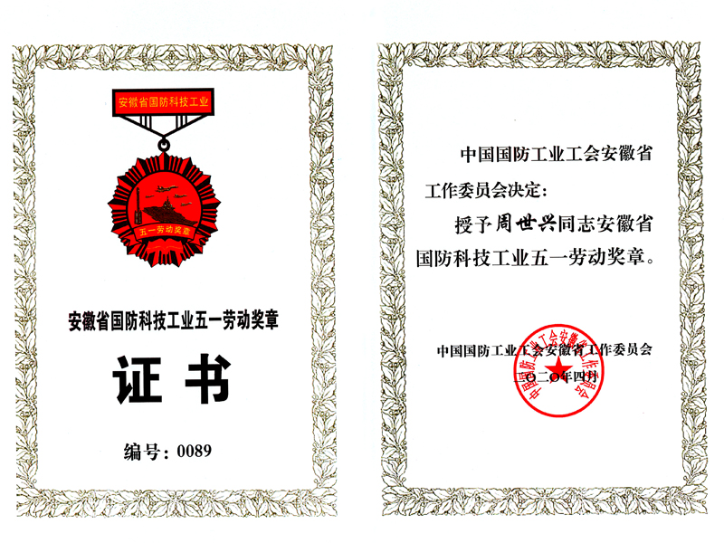 周世興獲安徽省國防科技工業五一勞動獎章