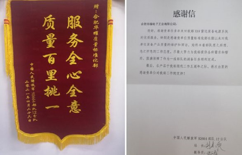 近日,駐于山東榮成的中國(guó)人民解放軍92664部隊(duì)12分隊(duì)向我司發(fā)來(lái)感謝信并贈(zèng)送錦旗,感謝我司近年來(lái)在X18雷達(dá)裝備電源系統(tǒng)項(xiàng)目中,多次策劃質(zhì)量維護(hù)和質(zhì)量回訪服務(wù),有效保障了部隊(duì)的戰(zhàn)備任務(wù)。2016年開始,華耀電源系統(tǒng)交付部隊(duì)使用后,部隊(duì)陸續(xù)反饋產(chǎn)品存在環(huán)境適應(yīng)性問(wèn)題,我司質(zhì)量部門迅速與技術(shù)、生產(chǎn)等相關(guān)部門積極尋找解決辦法并采取了有效的改進(jìn)措施。為了持續(xù)跟蹤我司產(chǎn)品使用情況,質(zhì)量部門與部隊(duì)建立了良好的溝通渠道,保持密切溝通,多次與客戶面對(duì)面交流,及時(shí)與公司技術(shù)和生產(chǎn)部門協(xié)調(diào),迅速解決客戶在使用中出現(xiàn)的問(wèn)題,取得了用戶部隊(duì)的信任。