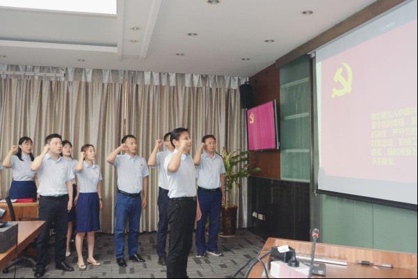 會議首先由黨總支委員、財務總監楊四新帶領與會黨員重溫入黨誓詞,在鮮紅的黨旗下,全體黨員右手過肩,回顧入黨時的莊嚴承諾,時刻提醒自己所肩負的神圣使命和責任。
