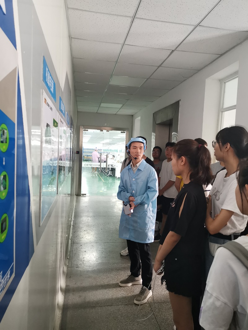 在生產(chǎn)二部,楊波帶領(lǐng)師生走進(jìn)車間,講解了電源產(chǎn)品的生產(chǎn)工藝、作業(yè)流程、組裝過程,使大家對(duì)電子元器件、模塊整機(jī)有了更直觀、形象的了解。
