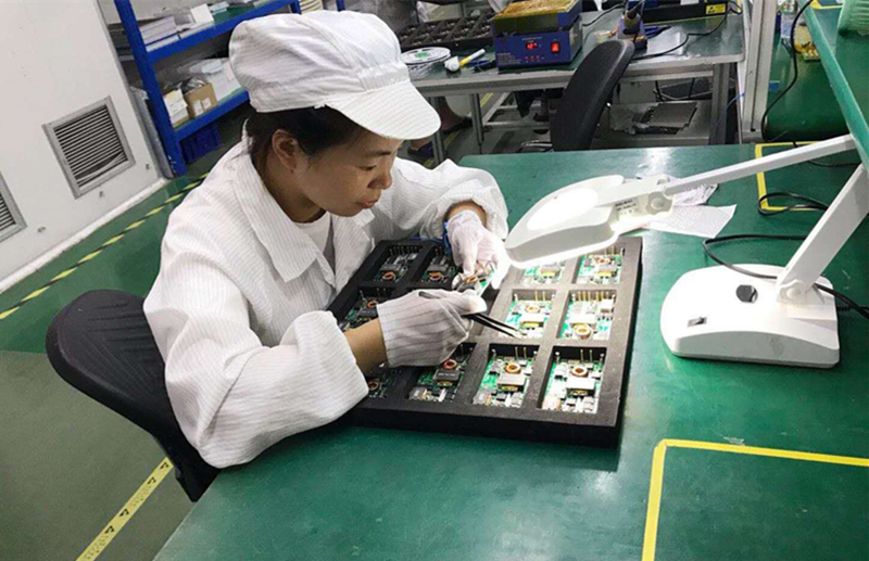 生產二部線長呂蘭蘭,人如名字一樣樸素簡單, 她那瘦小而堅韌的身影,每天準時出現在104三樓車間,帶領著由退伍軍人、大學生和比她大很多的老員工組成的混合隊伍,為公司生產加班加點。她也不停地在一排排現代化的智能設備中穿梭,像一顆螺絲釘,哪里有需要便馬上補上空缺,在送三防送篩選的路上風雨無阻,在驗收申請產品入庫時努力做到準確無誤。一件件合格電源從她們那布滿老繭的雙手中流向祖國最需要的地方。這群心靈手巧的“小人物”不僅創造財富,也創造了“勞動最光榮”的團隊氛圍。