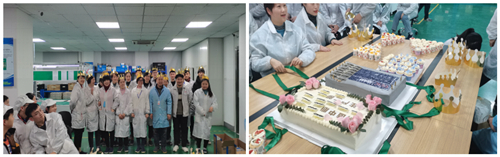 12月30號(hào),生產(chǎn)二部所有人齊聚104大樓4樓生產(chǎn)車間,即便是遠(yuǎn)在16所的“家人”也馬不停蹄地趕來了。下午5點(diǎn)半,活動(dòng)正式開始,生產(chǎn)二部經(jīng)理?xiàng)畈▽⒃缫丫臏?zhǔn)備好的生日禮物分發(fā)給過生日的員工并送上最誠摯的祝福。大家在一陣歡快的生日快樂歌聲中分享蛋糕,甜蜜的蛋糕似乎讓所有人忘記了這一年的艱難苦澀,臉上都洋溢著快樂的笑容。
