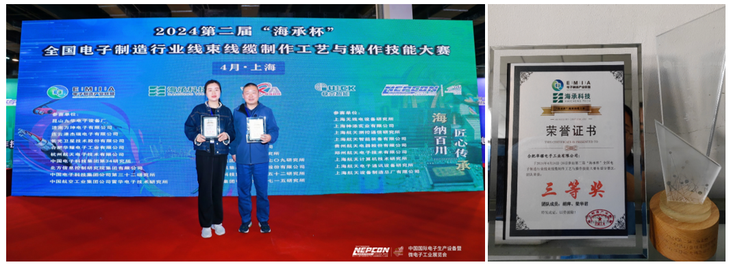 “海承杯”線束線纜制作工藝與操作技能大賽,共分為北部、東部、南部、西南四個(gè)分賽區(qū),每個(gè)分賽區(qū)評(píng)選出前六名參加全國(guó)總決賽。華耀此次參加的是東部賽區(qū)比賽,參加賽事的有航空、航天、中國(guó)電科、兵器裝備、兵器工業(yè)等30家知名單位。 本次線束線纜工藝及操作技能比賽是華耀公司首次參賽。為展現(xiàn)華耀風(fēng)采,制造中心組織資深工藝工程師梁華君帶隊(duì)、航天高級(jí)電裝工胡萍共同參加此次賽事,并針對(duì)比賽中設(shè)計(jì)的各項(xiàng)標(biāo)準(zhǔn)、技能操作,結(jié)合我司薄弱、缺失環(huán)節(jié),進(jìn)行了充分賽前準(zhǔn)備。 比賽過(guò)程緊張而激烈,需要現(xiàn)場(chǎng)編制工藝文件后、按照工藝文件操作,梁華君與胡萍在本次比賽中充分體現(xiàn)團(tuán)隊(duì)協(xié)作、互幫互助精神,在90分鐘賽程中出色完成了任務(wù),交出了優(yōu)異答卷(僅有12支隊(duì)伍完成了線纜制作)。 經(jīng)過(guò)優(yōu)秀現(xiàn)場(chǎng)表現(xiàn)與精彩PPT答辯,最終梁華君與胡萍獲得了“團(tuán)隊(duì)三等獎(jiǎng)”榮譽(yù)。團(tuán)隊(duì)將在10月份參加在深圳舉辦的總決賽。 第二屆“海承杯”實(shí)物及獲獎(jiǎng)情況 兩場(chǎng)賽后,領(lǐng)隊(duì)及參賽選手對(duì)比賽過(guò)程中的心得體會(huì)進(jìn)行了總結(jié): 胡志勇:比賽充分考驗(yàn)了參賽選手的手工焊接基礎(chǔ)操作及專業(yè)技能水平,以及對(duì)細(xì)節(jié)的洞察能力和對(duì)突發(fā)狀況的應(yīng)變能力,也充分體現(xiàn)了選手們卓越的焊接技能來(lái)源于平時(shí)不斷的堅(jiān)持和鍛煉。通過(guò)比賽我們看到了自身的優(yōu)勢(shì),也發(fā)現(xiàn)了存在的差距,在工作中我們會(huì)繼續(xù)發(fā)揮自身優(yōu)勢(shì)、彌補(bǔ)自己的差距,以更高的技能水平為國(guó)防事業(yè)添磚加瓦。 牛晶晶:此次是我第二次參加“快克杯”比賽,非常有幸與50余名專業(yè)選手同臺(tái)競(jìng)技,并不負(fù)所望獲得三等獎(jiǎng),展現(xiàn)了華耀公司在焊接技能方面的專業(yè)水平和精神面貌。賽后我們交流了焊接及工作經(jīng)驗(yàn),得到很多關(guān)于焊接技能方面的收獲,為以后的工作能夠更加順利的開展起到了積極的作用。通過(guò)這次比賽也找到了自身的差距,為以后的工作和訓(xùn)練指明了方向,我也會(huì)更加努力,爭(zhēng)取在決賽取得優(yōu)異的成績(jī),爭(zhēng)取更大的突破。 胡萍:能與這么多支同行優(yōu)秀的團(tuán)隊(duì)一起同臺(tái)競(jìng)技,非常感謝公司給予的機(jī)會(huì)。賽前我和梁師傅在公司進(jìn)行了此次線纜制作標(biāo)準(zhǔn)的學(xué)習(xí)、視頻的觀看,進(jìn)行了比較充分的準(zhǔn)備。比賽的過(guò)程和時(shí)間非常緊張,但通過(guò)梁師傅的指導(dǎo),我們通力合作,完成了任務(wù),并獲得三等獎(jiǎng)。此次比賽我個(gè)人也收獲很多,與其他團(tuán)隊(duì)溝通了很多,學(xué)習(xí)到了更多的技能也開闊了自身的眼界,在以后的工作中我會(huì)更加注重自身技能的提高以及傳承,以高質(zhì)量的產(chǎn)品回報(bào)公司的信任。 梁華君:本次比賽是我們參加的第一次由現(xiàn)場(chǎng)工藝編制、技能操作與PPT答辯相結(jié)合的比賽,其中部分工藝是我司空白工藝,需要充分的賽前準(zhǔn)備、良好的現(xiàn)場(chǎng)發(fā)揮及專業(yè)的答辯。比賽過(guò)程緊張激烈,僅有12支團(tuán)隊(duì)完成了比賽,比賽過(guò)程中需要工藝與操作緊密配合及相互協(xié)作。通過(guò)本次比賽的現(xiàn)場(chǎng)觀摩、學(xué)習(xí)及答辯過(guò)程中制作經(jīng)驗(yàn)與技巧、比賽心得的交流,加深了對(duì)線束線纜設(shè)計(jì)、制作及可靠性的理解,吸取了同行業(yè)線束線纜設(shè)計(jì)、制作的優(yōu)秀工藝方法和工藝傳承,后續(xù)將其引入華耀公司電源產(chǎn)品設(shè)計(jì)與制作文件中,提高華耀公司的線束線纜設(shè)計(jì)與制作能力。 結(jié)語(yǔ):每一次挑戰(zhàn)都是成長(zhǎng)的機(jī)會(huì),每一次獲獎(jiǎng)都是新的起點(diǎn)。比賽不僅是對(duì)參賽者技能的一次考驗(yàn),也是尋找差距、互相學(xué)習(xí)優(yōu)秀經(jīng)驗(yàn)的交流平臺(tái),更是展現(xiàn)華耀和個(gè)人風(fēng)采的一次亮相。一直以來(lái)華耀公司高度重視技能人才隊(duì)伍體系的建設(shè),通過(guò)多措并舉不斷強(qiáng)化發(fā)展通道和平臺(tái),積極選拔培養(yǎng)優(yōu)秀的選手參加各類技能比賽,為職工的職業(yè)發(fā)展鋪路架橋,推動(dòng)員工隊(duì)伍整體素質(zhì)提高。 未來(lái)制造中心團(tuán)隊(duì)將繼續(xù)發(fā)揚(yáng)拼搏與協(xié)作精神,為公司高質(zhì)量發(fā)展貢獻(xiàn)力量。