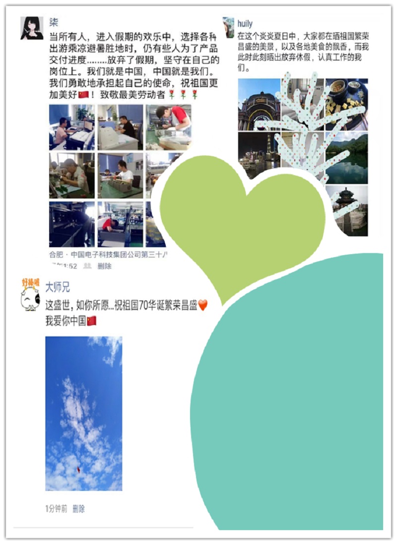 2019年,我們迎來了中華人民共和國70周年華誕,華耀人在這個(gè)高溫假,用自己的方式表達(dá)了對(duì)黨和祖國的愛與祝福。在領(lǐng)略祖國大好河山的同時(shí),我們也在思考是什么使我們的祖國日益強(qiáng)大,是什么讓我們的生活日新月異?答案只有一個(gè),是奮斗。在2019年余下的5個(gè)月里,讓我們以更飽滿的工作熱情,擼起袖子加油干!