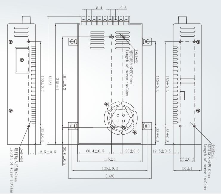 輸入電壓:90~132Vac,180~264Vac 手動(dòng)開(kāi)關(guān)轉(zhuǎn)換