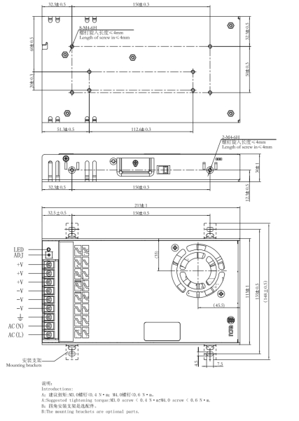 ●自然風冷(200W以下),溫控風扇(250W以上)